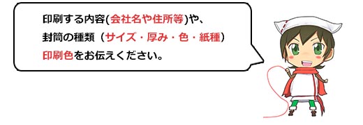 現状、ご使用の封筒がある場合は、封筒サンプルをご郵送頂ければ、こちらで、開封案内図も含めて、データを作成させて頂きます。 新規で封筒を作成の場合でも、会社名や住所等、封筒に印刷したい内容をご指示頂ければ、こちらで、データ作成させて頂きます。 後は、封筒の種類(サイズ・厚み・色・紙種)と印刷色(特色も可能です。)をご指示頂ければ、自由にかんたん開封封筒の作成ができます。