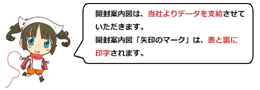 開封案内図「矢印のマーク」は、表と裏に印字させていただきます。表のみ、裏のみは、お受けできかねますのでご了承ください。