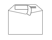 斜線部分2か所に、ゴム系接着剤を塗布して乾燥させたもの。 フラップを折り、糊面を合わせて押さえるだけで封かんできる。小ロットの内職作業向き。